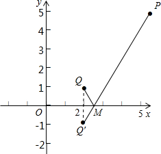 分析:Q(2,1)關(guān)于x軸的對(duì)稱點(diǎn)為Q'(2,-1),直線PQ'與x軸交點(diǎn)即為M點(diǎn),求出直線PQ'的解析式即可求出點(diǎn)M的坐標(biāo).
