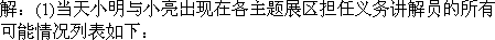 (1)請用列表法或畫樹狀圖法說明當(dāng)天小明與小亮出現(xiàn)在各主題展區(qū)擔(dān)任義務(wù)講解員的所有可能情況(用字母表示)。