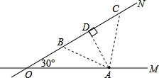 分析:要判斷是否會(huì)受影響,只需求得點(diǎn)A到ON的最小距離AD,和100比較,即可判斷;