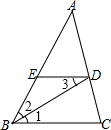 分析:根據(jù)角平分線的定義可得∠1=∠2,根據(jù)等邊對等角可得∠2=∠3,然后求出∠1=∠3,再根據(jù)內(nèi)錯角相等,兩直線平行解答.