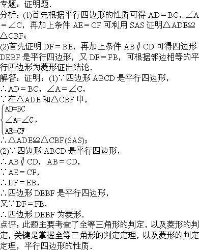 (1)求證:△ADE≌△CBF;