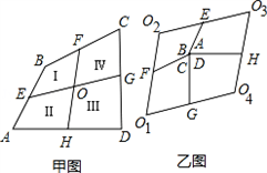 王老師出了一道操作探究題:已知凸四邊形ABCD(如甲圖)紙片,能否將凸四邊形紙片剪兩刀,分割成四塊,然后再拼成一個平行四邊形?![]()