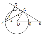 如圖,已知AB是圓O的直徑,∠DAB的平分線AC交圓O與點(diǎn)C,作CD⊥AD,垂足為點(diǎn)D,直線CD與AB的延長(zhǎng)線交于點(diǎn)E.