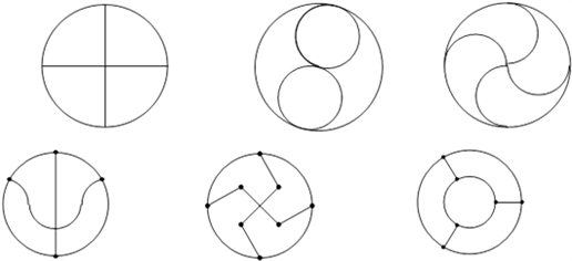 30、梅山中學(xué)搞綠化,要在一塊圓形空地上種植四種顏色的花,為了便于管理和美觀,相同顏色的花集中種植,且每種顏色的花所占的面積相同,現(xiàn)征集設(shè)計方案,請你幫忙設(shè)計兩種.