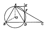 | 解:(1)在Rt△ABC中,∠BAC=90°,∠C=30°,D為BC的中點(diǎn), ∴∠ABD=60°,AD=BD=DC, ∴△ABD為等邊三角形, ∴O點(diǎn)為△ABD的中心(內(nèi)心,外心,垂心三心合一), ∴連接OA,OB,∠BAO=∠OAD=30°, ∴∠OAC=60°, 又∵AE為⊙O的切線, ∴OA⊥AE,∠OAE=90°, ∴∠EAF=30°, ∴AE∥BC, 又四邊形ABDF內(nèi)接于⊙, ∴∠FDC=∠BAC=90°, ∴∠AEF=∠FDC=90°, 即AE⊥DE; |