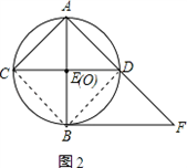 ∴CD是⊙O的直徑,即點E與點O重合(或線段CD過圓心O),如圖2,