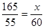 中午1點,身高為165cm的小冰的影長為55cm,同學(xué)小雪此時在同一地點的影長為60cm,那么小雪的身高為( )