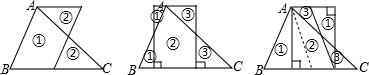 請分別按下列要求用直線將圖2中的△ABC重新進行分割,畫出分割線及拼接后的圖形.![]()