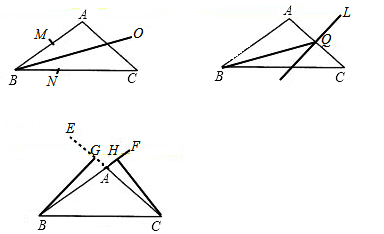 解:(1)①以B為圓心,任意長為半徑作圓交BA,BC于M,N;②分別以M,N為圓心,大于NM長為半徑作弧,兩弧相交于O;③連接BO,BO就是所求的角平分線.(圖1)