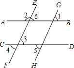 分析:先根據EF∥GH,∠1=55°求出∠6的度數(shù),又平角的定義即可得出∠2的度數(shù),根據AB∥CD即可得出∠3的度數(shù).