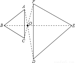 【答案】分析:設位似中心為O,放大1倍即為原圖形的2倍,延長AO到D,使OD=2OA,得到點A的對應點D,同法得到B、C的對應點E、F,順次連接各點即可.