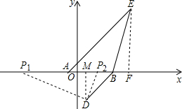 (3)過點(diǎn)E作EF⊥x軸于點(diǎn)F,過點(diǎn)D作DM⊥x軸于點(diǎn)M.先證明△EAF與△BDM都是等腰直角三角形,得到∠EAB=∠MBD.當(dāng)以點(diǎn)P、B、D為頂點(diǎn)的三角形與△AEB相似時(shí),①過點(diǎn)D作∠DP