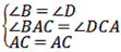 | 解:(1)在△ABC和△CDA中, ∴△ABC≌△CDA, ∴AD=BC,AB=CD, ∴四邊形ABCD是平行四邊形; |