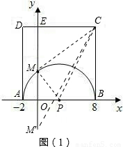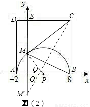 如圖,在平面直角坐標系中,A,B兩點的坐標分別為A(-2,0),B(8,0),以AB為直徑的半圓與y軸交于點M,以AB為一邊作正方形ABCD.