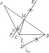 (2)用直尺和圓規(guī)作出△ABC的邊AB的垂直平分線EF,交邊AB、AC于點(diǎn)M、N,連接CM.那么線段CM是△ABC的