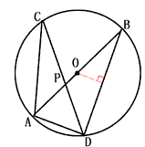 如圖,在⊙O中,直徑AB與弦CD相交于點P,∠CAB=40°,∠APD=65°。