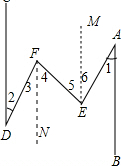 分析:分別過E、F 點(diǎn)作CD的平行線EM、FN,根據(jù)平行線的性質(zhì)得CD∥FN∥EM∥AB,則∠3=∠1,∠4=∠5,∠1=∠6,而∠1=∠2,于是3+∠4=∠5+∠6.