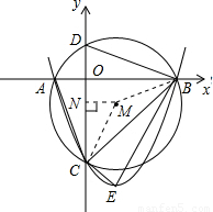 如圖,已知拋物線y=ax2+bx-3與x軸交于A、B兩點,與y軸交于C點,經(jīng)過A、B、C三點的圓的圓心M(1,m)恰好在此拋物線的對稱軸上,⊙M的半徑為.設(shè)⊙M與y軸交于D,拋物線的頂點為E.