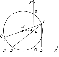如圖,在直角坐標(biāo)系中,O為原點,A(1,3)B(-2,0),△AOB的外接圓M交y軸于E點,AC是直徑,AD⊥OD于D.
