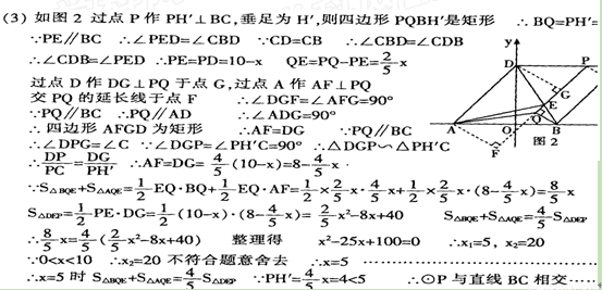 (2)連接BD,點(diǎn)P是線段CD上一動(dòng)點(diǎn)(點(diǎn)P不與C、D兩點(diǎn)重合),過點(diǎn)P作PE∥BC交BD與點(diǎn)E,過點(diǎn)B作BQ⊥PE交PE的延長(zhǎng)線于點(diǎn)Q.設(shè)PC的長(zhǎng)為x,PQ的長(zhǎng)為y,求y與x之間的函數(shù)關(guān)系式(直接寫出自變量x的取值范圍);