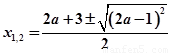 即x1=2a+1,x2=2. ...………………………………………….1’