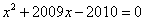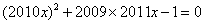 方程x2+2009x-2010=0較大根為m,方程(2010x)2+2009×2011x-1=0較小根為n,求m+n的值。