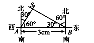 如圖,某輪船上午8時(shí)在A處,測(cè)得燈塔S在北偏東60°的方向上,向東行駛至中午12時(shí),該輪船在B處,測(cè)得燈塔S在北偏西30°的方向上(自己完成圖形),已知輪船行駛速度為每小時(shí)20千米,則∠ASB=______,AB長為_____![]()