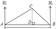 如圖,在一筆直的海岸線上有A、B兩個(gè)觀測點(diǎn),A在B的正西方向,AB=2km,從A測得船C在北偏東60°的方向,從B測得船C在北偏西45°的方向,求船C離海岸線的距離.(結(jié)果保留根號(hào))