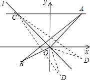 分析:(1)直線AC∥x軸交直線l于點C,可知A、C兩點縱坐標相等,直線l解析式為y=-x,可知C點橫、縱坐標互為相反數(shù),可求C點坐標;