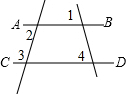 分析:根據(jù)平行線的判定推出AB∥CD,根據(jù)平行線的性質(zhì)得出∠1=∠4即可.
