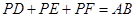1.如圖1,若點(diǎn)P在BC邊上,此時(shí)PD=0,易證PD,PE,PF與AB滿足的數(shù)量關(guān)系PD+PE+PF=AB;當(dāng)點(diǎn)P在△ABC內(nèi),先在圖2中作出圖形,并寫出PD,PE,PF與AB滿足的數(shù)量關(guān)系,然后證明你的結(jié)論