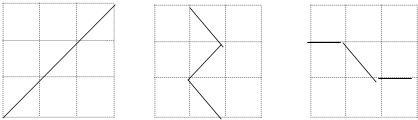 23、在3×3的方格紙中,試用格點(diǎn)連線將方格紙分割成大小形狀都相同的兩部分.如圖所示就是其中的二例.請(qǐng)根據(jù)題意另外再給出種3種分割方法.