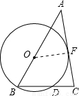 (2)解:⊙O與AC相切于F點,連接OF,