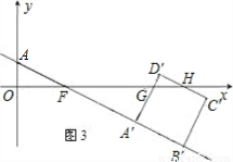 ③當D′逐漸移動到x軸的過程中,即當2<t≤3時,此時S為五邊形A′B′C′HG的面積,S=正方形A′B′C′D′的面積-三角形GHD′的面積.可據(jù)此來列關于S,t的函數(shù)關系式;