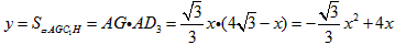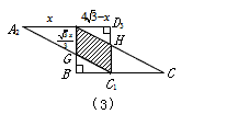 | 解:(1)在Rt△ABC中, 由勾股定理得,AC= 在△ACA1中, ∵AC=A1C1,∠ACA1=60°, ∴△ACA1為等邊三角形, ∴AA1=AC=8; (2)如圖2所示,過B,D2分別作BE⊥AC于E,D2F⊥AC于F,則BE∥D2F, 在Rt△ABC中, ∵AB=4,BC=4 ∴∠BAC=60°, 在Rt△ABE中,AB=4,∠BAE=60°,∠ABE=30°, ∴AE= 同理,CF=2,D2F=2 ∴EF=AC-AE-CF=8-2-2=4, ∵BE ∴四邊形BEFD2是平行四邊形, ∴BD2=EF=4; (3)如圖3所示,AA2=x,AG= ∵平移的概念及矩形的性質(zhì)得AG∥C1H,GC1∥AH, ∴四邊形AGC1H是平行四邊形, ∴ |
