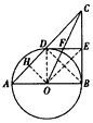 (2)連接OC交DE于點(diǎn)F,若OF=CF,求tan∠ACO的值。