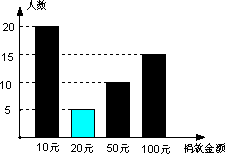 紅星中學團委為汶川地震災區(qū)組織獻愛心捐獻活動,小明對本班同學的捐款情況進行了統(tǒng)計,其中捐