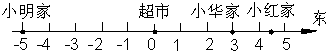 (1)以超市為原點(diǎn),以向東為正方向,用1個(gè)單位長度表示1千米,你能在數(shù)軸上表示出小華家、小紅家和小明家的位置嗎?