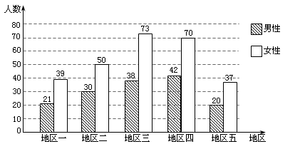 (2)填空:該市五個地區(qū)100周歲以上老人中,男性人數(shù)的極差(最大值與最小值的差)是 人,女性人數(shù)的最多的是地區(qū)______;