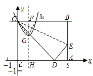 | 解:(1)根據(jù)題意,得CD=CB=OA=5,OD=3, ∵∠COD=90°, ∴OC= ∴點(diǎn)C的坐標(biāo)是(0,4); (2)∵AB=OC=4,設(shè)AE=x,則DE=BE=4-x,AD=OA-OD=5-3=2, 在Rt△DEA中,DE2=AD2+AE2 ∴(4-x)2=22+x2 解之,得x= 設(shè)DE所在直線的解析式為y=kx+b, ∴ ∴DE所在直線的解析式為 (3)∵點(diǎn)C(0,4)在拋物線 ∴c=4, 即拋物線為 假設(shè)在拋物線 根據(jù)拋物線的對(duì)稱性及等邊三角形的性質(zhì),得點(diǎn)G一定在該拋物線的頂點(diǎn)上,設(shè)點(diǎn)G的坐標(biāo)為(m,n), ∴ 即點(diǎn)G的坐標(biāo)為 設(shè)對(duì)稱軸x=- 則點(diǎn)F的坐標(biāo)為(- ∵b<0, ∴m>0, 點(diǎn)G在y軸的右側(cè),DF=m=- ∵CM=CG=2CF=- ∴在Rt△CGF中,CG2=CF2+FG2, 解之,得b=-2,(∵b<0) ∴m=- ∴點(diǎn)G的坐標(biāo)為 ∴在拋物線 |