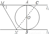 D、l1∥l2,兩平行線之間的距離為線段AB的長,即直徑AB=2,正確.