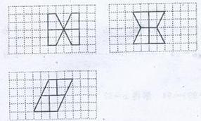 (2)把圖2中的平行四邊形分割成四個全等的四邊形(要求在圖2中畫出分割線),并把所得的四個全等的四邊形在圖3中拼成一個軸對稱圖形或中心對稱圖形,使所得圖形與原圖形不全等且各個頂點都落在格點上。