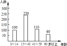 3.若該轄區(qū)年齡在0~14歲的居民約有3500人,請估計(jì)年齡在15~59歲的居民的人數(shù)