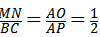 | 解:(1)連接AP,交MN于O, ∵將△AMN沿MN所在的直線折疊,使點(diǎn)A的對應(yīng)點(diǎn)為P, ∴OA=OP,AP⊥MN,AN=PN,AM=PM, ∵M(jìn)N∥BC, ∴△AMN∽△ABC,AO⊥MN, ∴ ∵BC=6, ∴MN=3, ∴當(dāng)MN=3時,點(diǎn)P恰好落在BC上; |