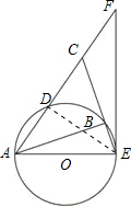 如圖,在Rt△ABC中,∠ABC=90°,D是AC的中點(diǎn),⊙O經(jīng)過A、B、D三點(diǎn),CB的延長(zhǎng)線交⊙O于點(diǎn)E.
