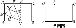 (2)由(1)得,△FMN∽△QWP,當(dāng)△QWP為直角三角形時(shí),△FMN為直角三角形,根據(jù)DM=BN=x,AN=6-x,AM=4-x,利用勾股定理求得FM