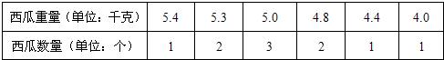 | 西瓜的質量(單位:千克) | 5.5 | 5.4 | 5.0 | 4.9 | 4.6 | 4.3 |