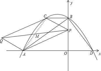 (2)①首先得出四邊形OAQC為平行四邊形,若PQ2=PA2+PC2,則PQ2=PA2+AQ2,則∠PAQ=90°即∠APC=90°,進(jìn)而得出△PAO∽△CPB,以及=,得出這樣的點(diǎn)不存在;