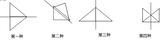 兩個(gè)全等的三角形,可以拼出各種不同的圖形,如圖所示中已畫出其中一個(gè)三角形,請(qǐng)你分別補(bǔ)畫出另一個(gè)與其全等的三角形,使每個(gè)圖形分別成為不同的軸對(duì)稱圖形(所畫三角形可與原三角形有重疊的部分),你最多可以設(shè)計(jì)出幾種?(至少設(shè)計(jì)四種)