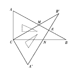| 解:(1)∵△ABC經(jīng)旋轉(zhuǎn)和翻折得到△A′B′C, ∴∠A=∠A′AC=A′C ∠ACB=∠A′CB′, ∴∠ACB-∠MCN =∠A′CB′-∠MCN, 即∠ACM=∠A′CN 在△ACM和△A′CN中, ∠A=∠A′,AC=A′C,∠ACM=∠A′CN, ∴△ACM≌△A′CN(A.S.A); (2)當(dāng)∠α=30°時(shí),ME= 理由如下: ∵△ABC經(jīng)旋轉(zhuǎn)和翻折得到△A′B′C, ∴∠B′=∠B=30°, ∵∠α=30°, ∴∠MCN=30° ∴∠B′ME=∠MCN+∠B=30°+30°=60°, ∴∠MEB′=180°-∠B′ME-∠B′=180°-60°-30°=90°, ∴在Rt△MEB′中有ME=MB′, ∴當(dāng)∠α=30°時(shí),ME= |